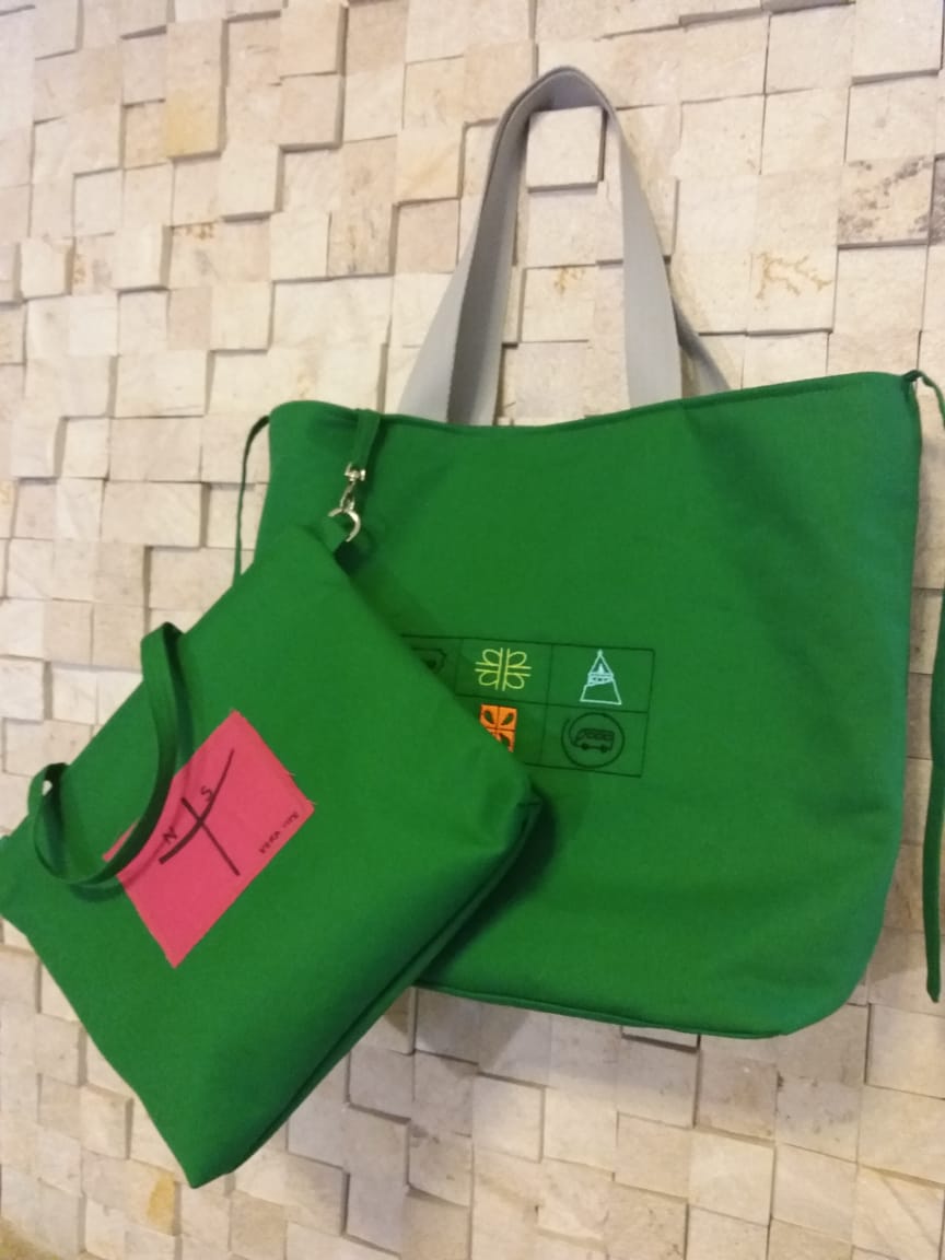 R$ 178,90Feita em brim, verde bandeira, alça dupla de ombro, vêm com bolsinha destacável estilo refil, forro em chita, traz na parte da frente a iconografia de Brasília, bordada à máquina.