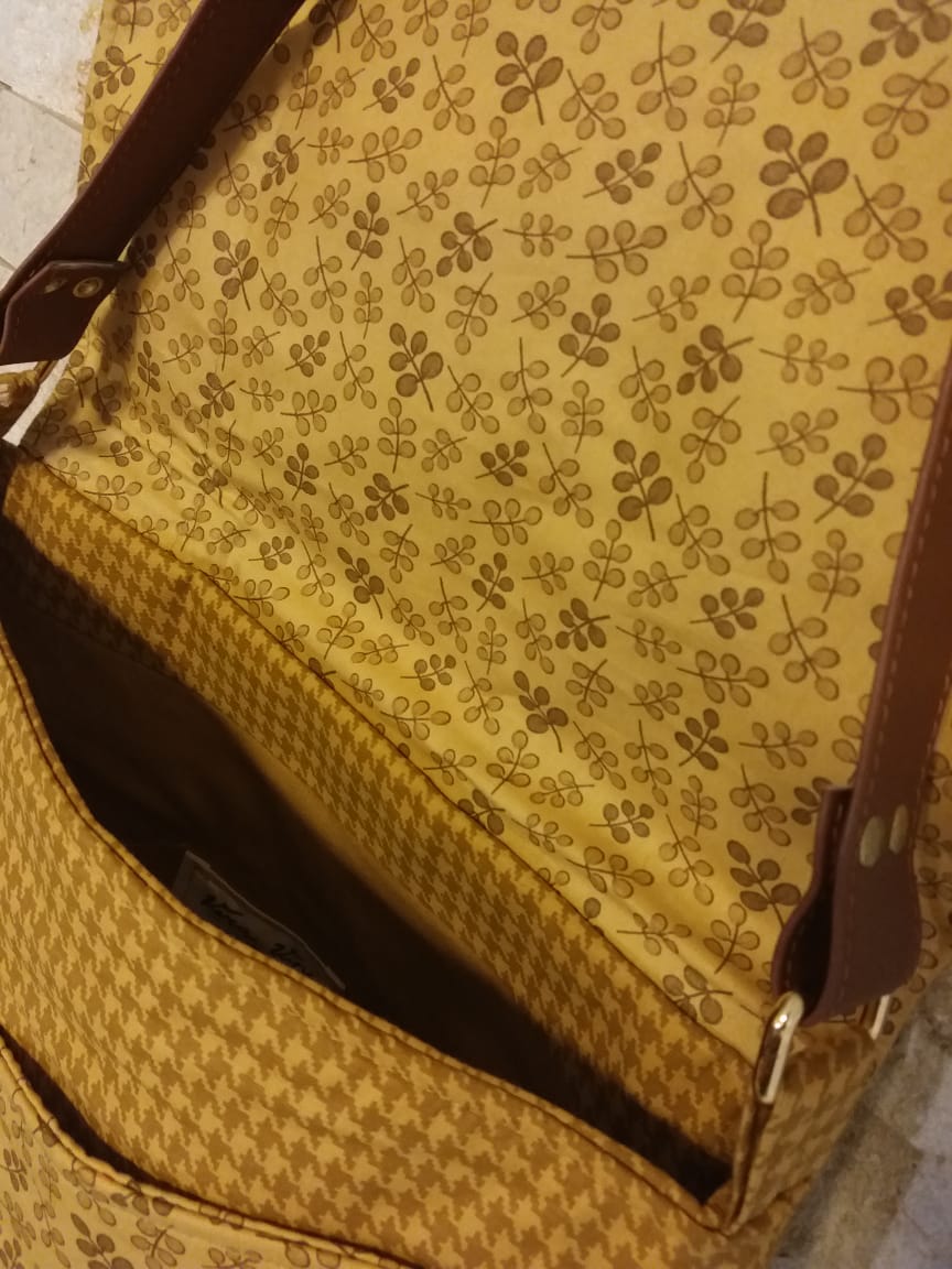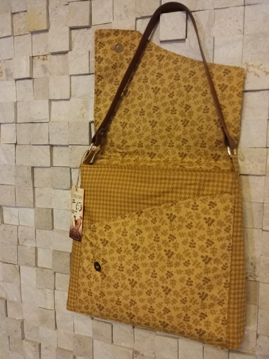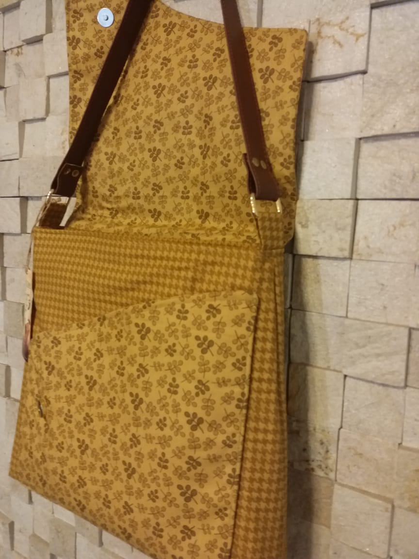 Feita em tecido 100% tricoline de algodão, composê, alça em couro ecológico.